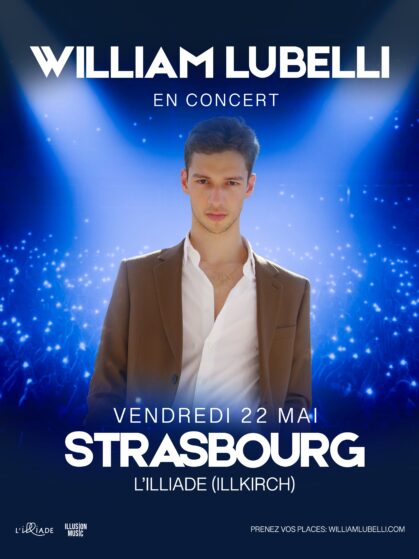 BILLETTERIE WILLIAM LUBELLI EN LIVE Retrouvez William Lubelli le Vendredi 22 Mai 2026 à l’Illiade pour un show unique 100% LIVE ! BILLETTERIE DERNIER CLIP